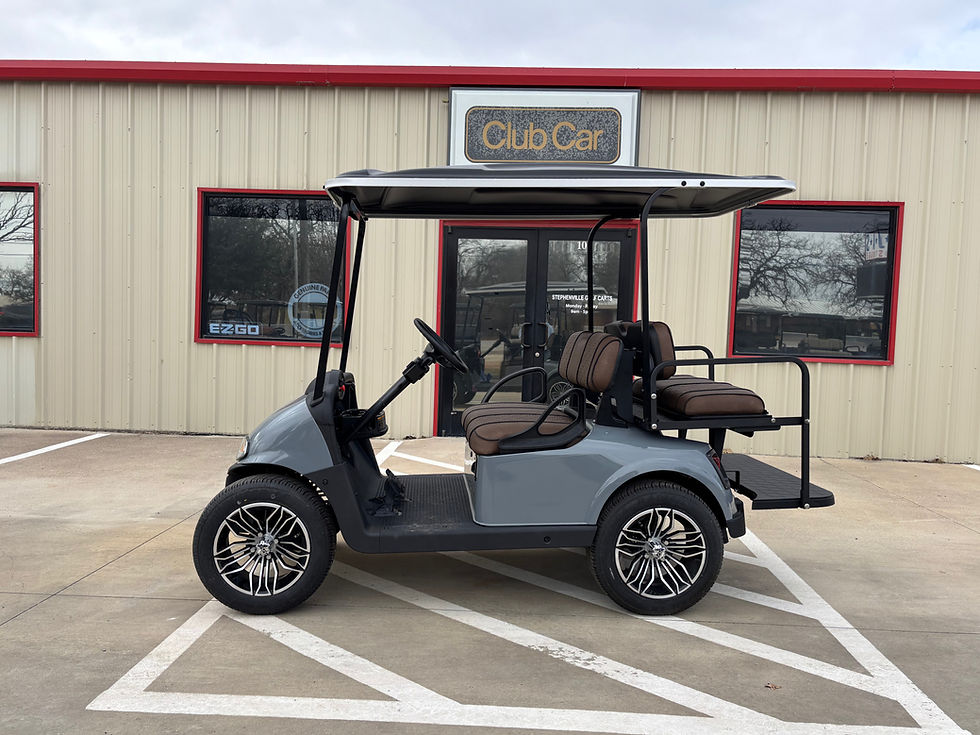 Stephenville Golf Carts is an authorized dealer for E-Z-GO, Cushman, and Club Car. We offer a large selection of new gas and electric golf and recreational vehicles, ranging from 2 to 6 passenger configurations.
